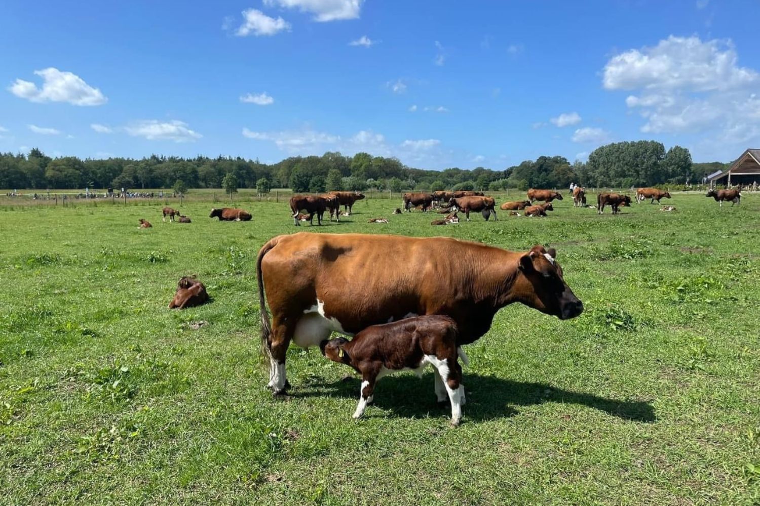 Het brandrode rund Het is niet moeilijk te begrijpen waarom Simone voor deze runderen viel, het zijn beauty’s met hun egale diepdonkerrode kleur. Brandrode runderen hebben een rustig vriendelijk karakter. Ze kunnen het jaar rond buiten lopen en ze kunnen goed tegen moeilijke weersomstandigheden. Het brandrode rund is van een dubbeldoel ras, ze worden gehouden voor de melk maar ook voor het vlees. Het kwalitatief goede vlees kan geproefd worden in het restaurant op Erve Vechtdal. De koeien kalven gemakkelijk af en de kalfjes blijven bij de moeder koeien lopen.