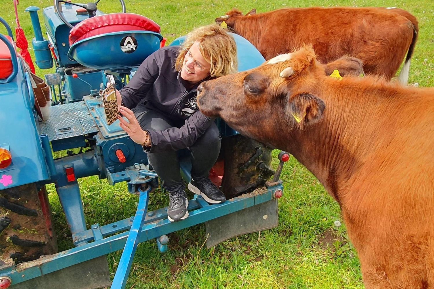 Simone organiseert rondritten met een vintage tractor en huifkar. Daarbij vertelt ze met passie over haar kudde. De ene koe is de nadere niet, ze hebben hun eigen gewoonten en eigenaardigheden.